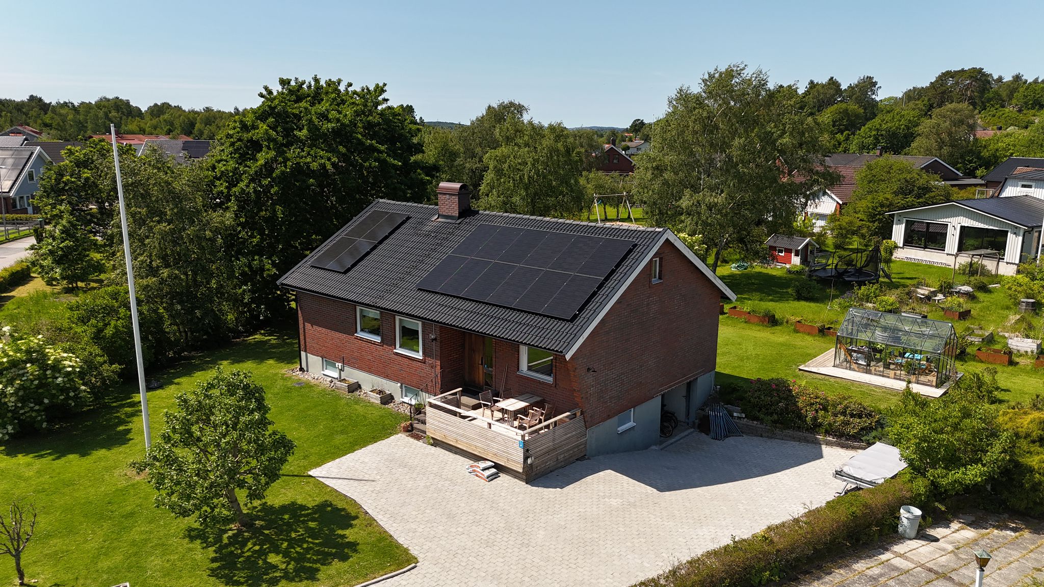 Solcellsanläggning på ett tak i Kode, kompletterad med batterilager för smart lagring av egenproducerad el.